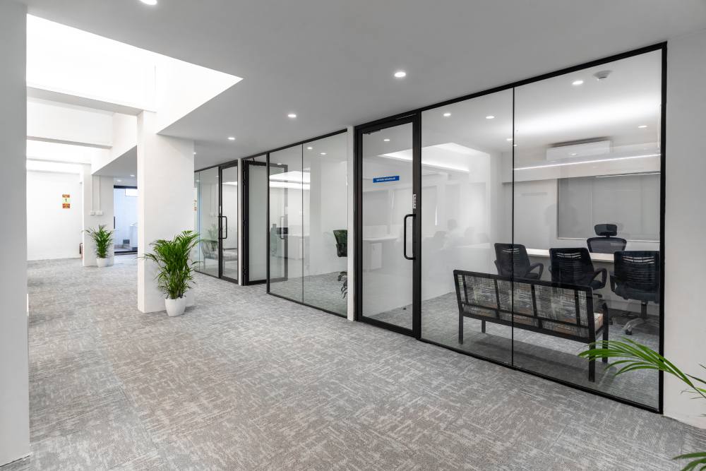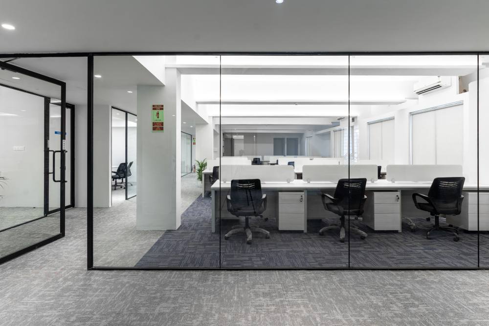 This spacious office, tailor-made for a multinational corporation, seamlessly blends simplicity, luxury, and budget-conscious design. The expansive open floor plan accommodates 112 workstations alongside open cabins, while generous conference rooms, individual cabins, and meeting spaces offer ample room for collaboration and focused work.