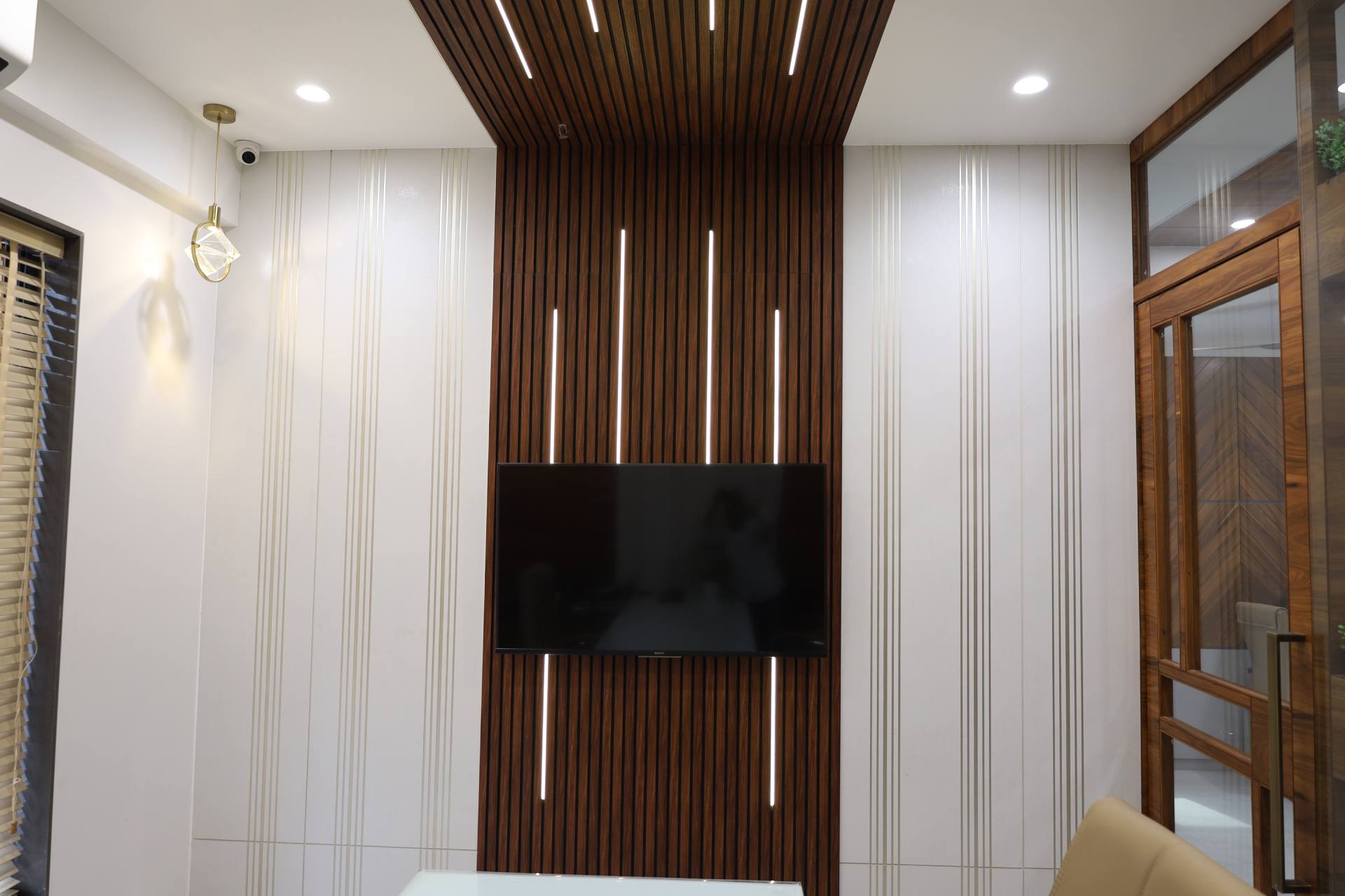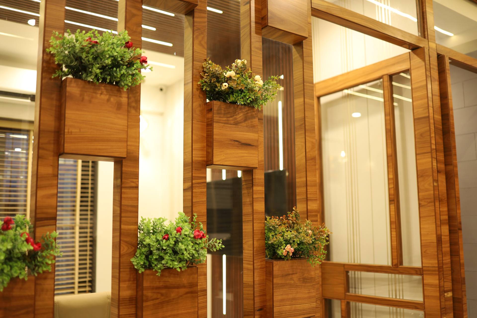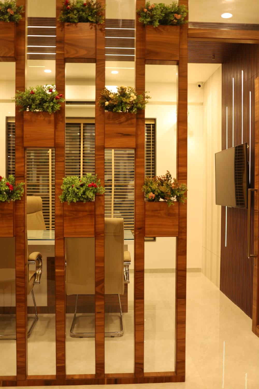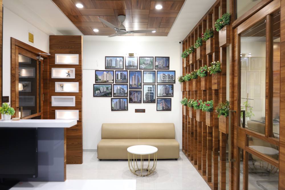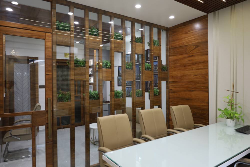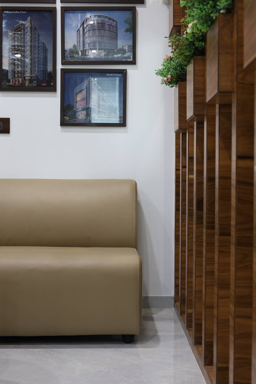 The client desired a luxurious yet inviting office, and our design delivers. The space flows seamlessly between cabins, workstations, and a welcoming lobby. A stylish partition creates privacy upon entry, offering a touch upon warmth and transforming the waiting area into a visually intriguing prelude to the rest of the space.