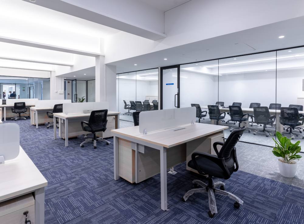 This spacious office, tailor-made for a multinational corporation, seamlessly blends simplicity, luxury, and budget-conscious design. The expansive open floor plan accommodates 112 workstations alongside open cabins, while generous conference rooms, individual cabins, and meeting spaces offer ample room for collaboration and focused work.