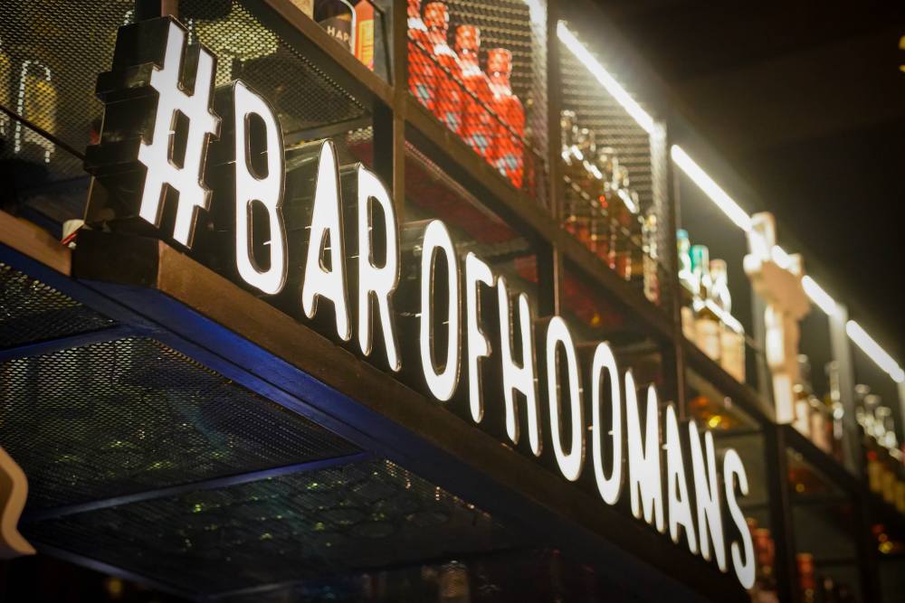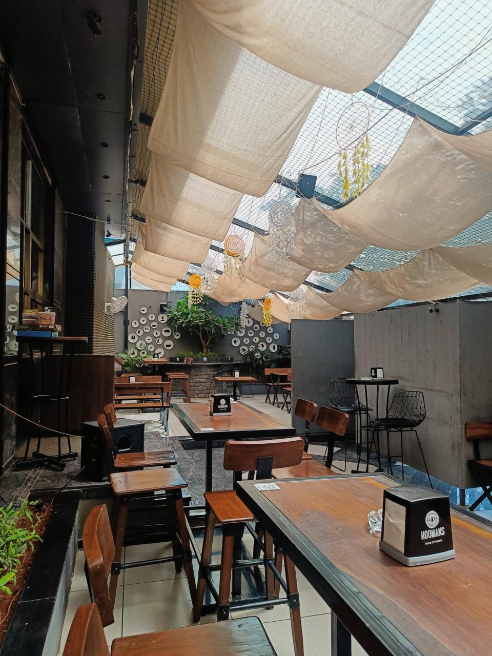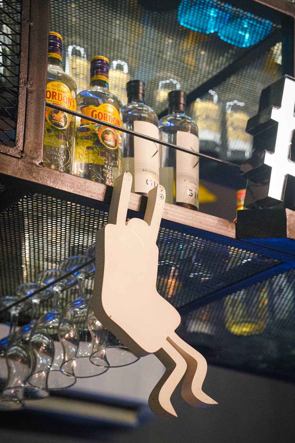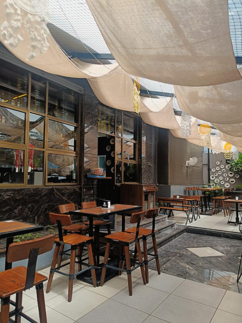 The centerpiece? A seamless bar that connects the inviting interior with the captivating outdoor space, where lush greenery complements a striking monochrome aesthetic.